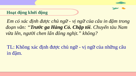 TL: Không xác định được chủ ngữ - vị ngữ của những câu in đậm. Hình thành kiến thức