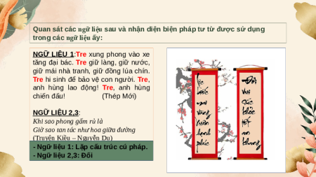 - Ngữ liệu 1: Lặp cấu trúc cú pháp. - Ngữ liệu 2,3: Đối