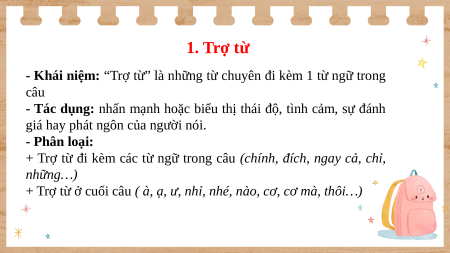 - Khái niệm: “Trợ từ” là những từ chuyên đi kèm 1 từ ngữ trong