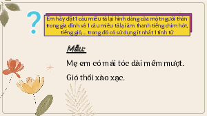 tiếng gió,… trong đó có sử dụng ít nhất 1 tính từ Mẫu: