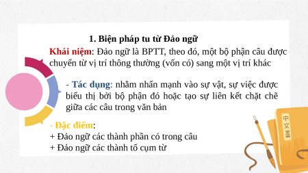 Khái niệm: Đảo ngữ là BPTT, theo đó, một bộ phận câu được