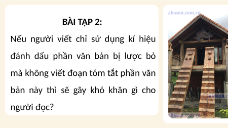 - Cách đánh dấu phần bị tỉnh lược trong mỗi văn bản trên là: tóm tắt ý chính