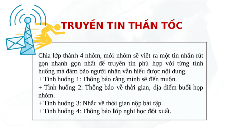 Chia lớp thành 4 nhóm, mỗi nhóm sẽ viết ra một tin nhắn rút
