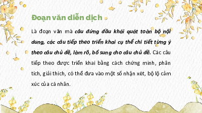 Là đoạn văn mà câu đứng đầu khái q uát toàn bộ nội