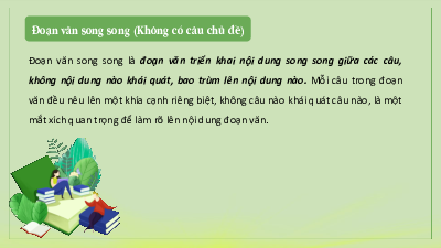 Đoạn văn song song là đoạn văn triển khai nội dung song song giữa các câu,