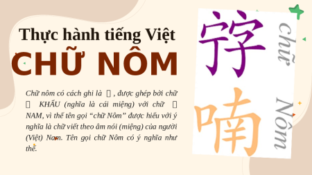 - Chữ Nôm là chữ viết cổ dùng để ghi âm tiếng Việt, được cha ông ta sáng tạo