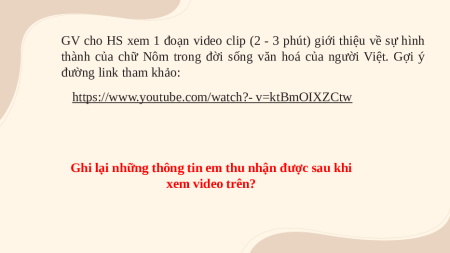 thành của chữ Nôm trong đời sống văn hoá của người Việt. Gợi ý đường link tham khảo: