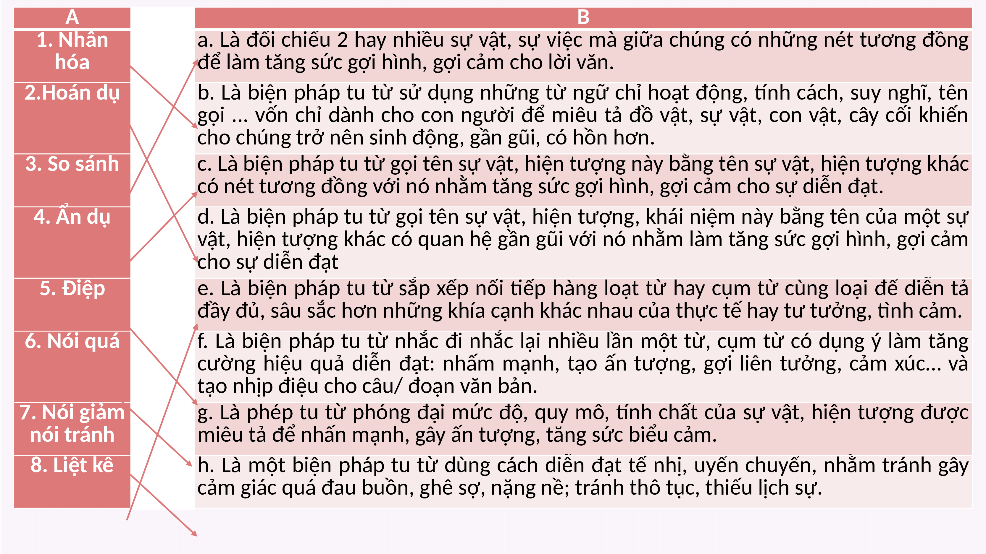 vật, hiện tượng khác có quan hệ gần gũi với nó nhằm làm tăng sức gợi hình, gợi cảm cho sự diễn đạt 5. Điệp