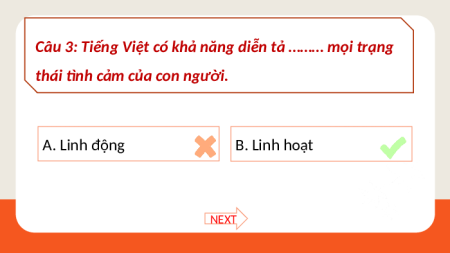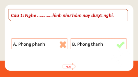 Câu 1: Nghe ………… hình như hôm nay được nghỉ. A. Phong phanh B. Phong thanh NEXT