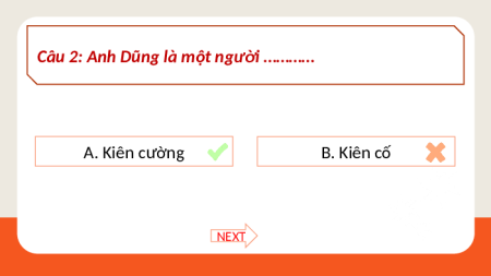 Câu 2: Anh Dũng là một người ………… A. Kiên cường B. Kiên cố NEXT