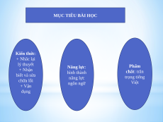 THỰC HÀNH TIẾNG VIỆT MỤC TIÊU BÀI HỌC Kiến thức: + Nhăc lại lý thuyết Năng lực: Phẩm + Nhận hình thành chất: trân biết và sửa năng lực trọng tiếng chữa lỗi ngôn ngữ Việt + Vận dụng KHỞI ĐỘNG: Nối Từ