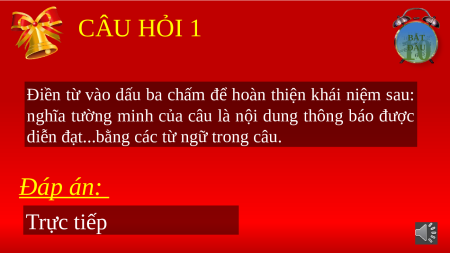 diễn đạt...bằng các từ ngữ trong câu. Đáp án: Trực tiếp CÂU HỎI 2 123456789 10 BẮT ĐẦU