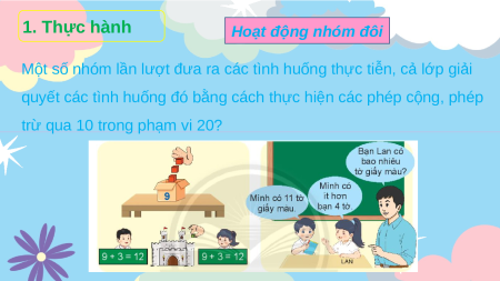 Thực hành tính toán liên quan đến ý nghĩa thực tiễn phép cộng, phép trừ.