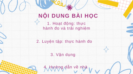 BÀI 57: THỰC HÀNH VÀ TRẢI NGHIỆM ĐO ĐỘ DÀI NỘI DUNG BÀI HỌC 1. Hoạt động: thực hành đo và trải nghiệm