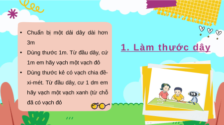 • Chuẩn bị một dải dây dài hơn 3m 1. Làm thước dây