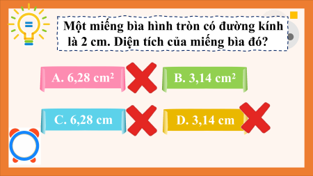 Vậy chu vi của hình tròn đó là: A. 3,14 cm2 B. 1,57 cm C. 3,14 cm D. 1,57 cm2