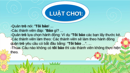 Giáo viên: ........... KHỞI ĐỘNG TRÒ CHƠI: TÔI BẢO LUẬT CHƠI: