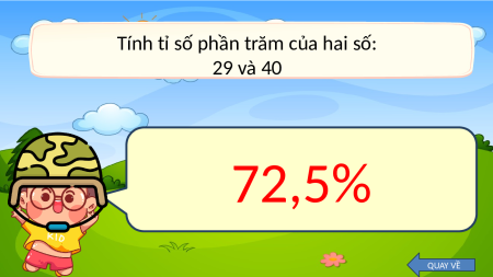 Tính tỉ số phần trăm của hai số: 29 và 40 72,5% QUAY VỀ