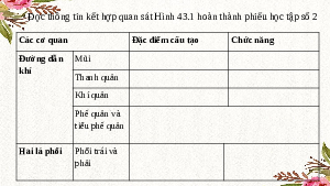 Đọc thông tin kết hợp quan sát Hình 43.1 hoàn thành phiếu học tập số 2