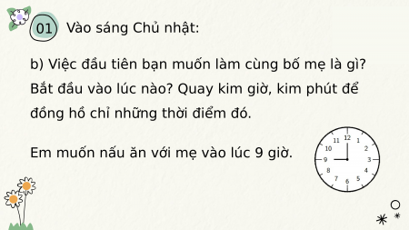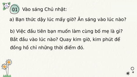 HOẠT ĐỘNG 01 Vào sáng Chủ nhật: