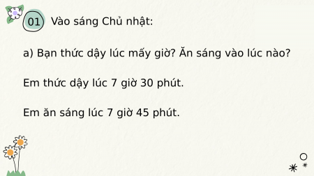 a) Bạn thức dậy lúc mấy giờ? Ăn sáng vào lúc nào?