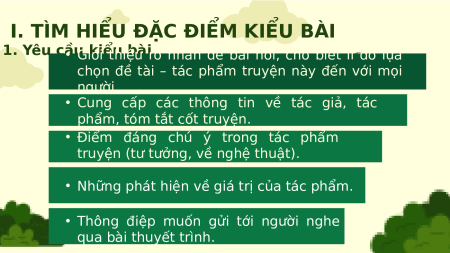 I. TÌM HIỂU ĐẶC ĐIỂM KIỂU BÀI