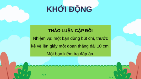 kẻ vẽ lên giấy một đoạn thẳng dài 10 cm.