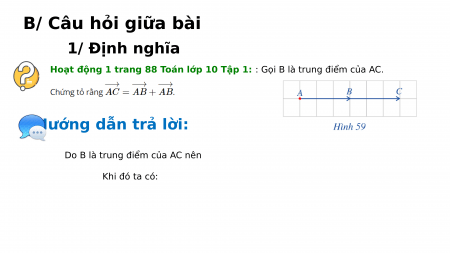Hoạt động 1 trang 88 Toán lớp 10 Tập 1: : Gọi B là trung điểm của AC.