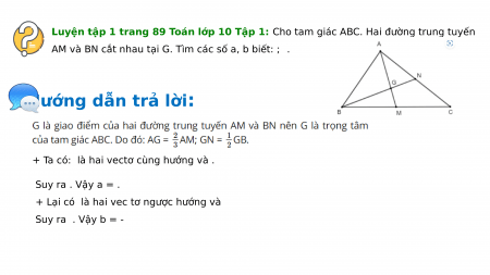 AM và BN cắt nhau tại G. Tìm các số a, b biết:; .