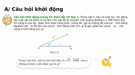 Câu hỏi khởi động trang 93 Toán lớp 10 Tập 1: Trong vật lí, nếu có một lực tác động