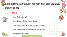 1. Kể một việc em đã làm thể hiện tình cảm yêu quý,