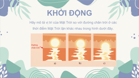 Hãy mô tả vị trí của Mặt Trời so với đường chân trời ở các