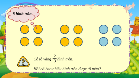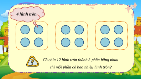Cô chia 12 hình tròn thành 3 phần bằng nhau