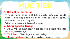 tách – gộp số; quan hệ cộng, trừ; các bảng cộng,