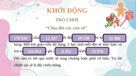 bảng. Mỗi khi giáo viên lật bảng, 5 học sinh mỗi đội sẽ thảo luận và tìm ra một 21 nử 5236 a 7 8của