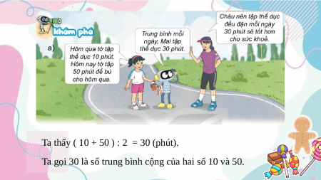Ta thấy ( 10 + 50 ) : 2 = 30 (phút).