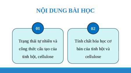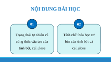 tính chất hoá học giống nhau và khác nhau như thế nào? BÀI 5: TINH BỘT VÀ CELLULOSE NỘI DUNG BÀI HỌC 01 02 Trạng thái tự nhiên và Tính chất hóa học cơ