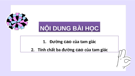 BÀI 13: TÍNH CHẤT BA ĐƯỜNG CAO CỦA TAM GIÁC NỘI DUNG BÀI HỌC