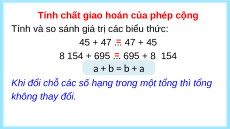 Giáo án Powerpoint Tính chất giao hoán, tính chất kết hợp của phép cộng Toán lớp 4 Chân trời sáng tạo (Phiên bản 2)