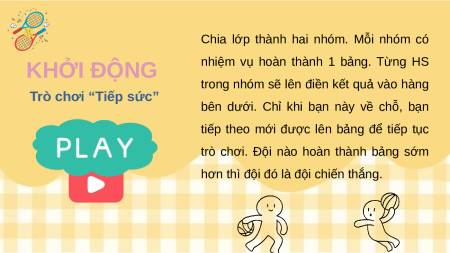 Chia lớp thành hai nhóm. Mỗi nhóm có KHỞI ĐỘNG