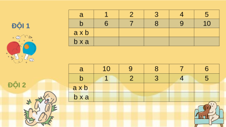 hơn thì đội đó là đội chiến thắng. a 1 2 3 4 5 b 6 7 8 9 10 ĐỘI 1 a x b b x a a 10 9 8 7 6 b 1 2 3 4 5 ĐỘI 2 a x b b x a BÀI 40 TIẾT 1 TÍNH CHẤT GIAO HOÁN