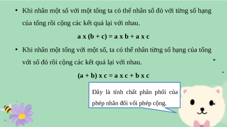 Giáo án Powerpoint Tính chất phân phối của phép nhân đối với phép cộng Toán lớp 4 Kết nối tri thức (Phiên bản 2)