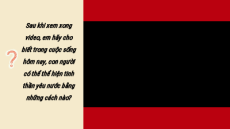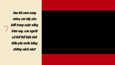 TINH THẦN Của nhân YÊU NƯỚC dân ta HỒ CHÍ MINH Khởi 01 động Sau khi xem xong video, em hãy cho biết trong cuộc sống hôm nay, con người có thể thể hiện tinh thần yêu nước bằng những cách nào? Hình thành 02 kiến thức mới