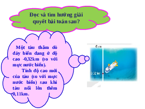 Đọc và tìm hướng giải quyết bài toán sau? Một tàu thăm dò đáy biển đang ở độ cao -0,32km (so với mực nước biển). Tính độ cao mới của tàu (so với mực nước biển) sau khi tàu nổi lên thêm 0,11km.