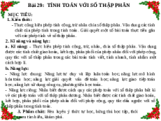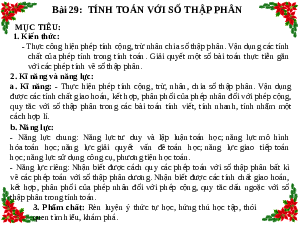 Bài 29: TÍNH TOÁN VỚI SỐ THẬP PHÂN MỤC TIÊU: 1. Kiến thức: