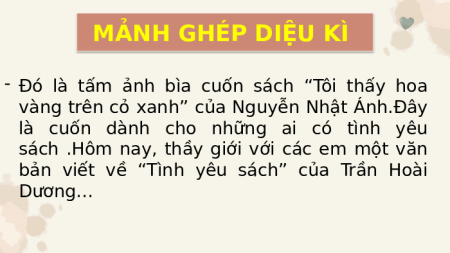 vàng trên cỏ xanh” của Nguyễn Nhật Ánh.Đây