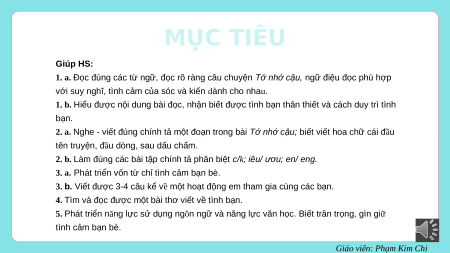 Giáo viên: Phạm Kim Chi MỤC TIÊU Giúp HS: