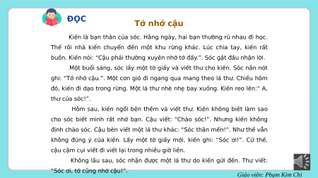 không đúng ý của kiến. Lấy một tờ giấy mới, kiến ghi: “Sóc ơi!”. Cứ thế,