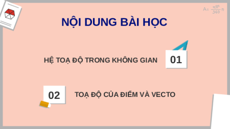 BÀI 2. TỌA ĐỘ CỦA VECTƠ TRONG KHÔNG GIAN NỘI DUNG BÀI HỌC