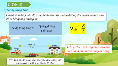 VD: Tính tốc độ trung bình đi từ nhà đến trường biết